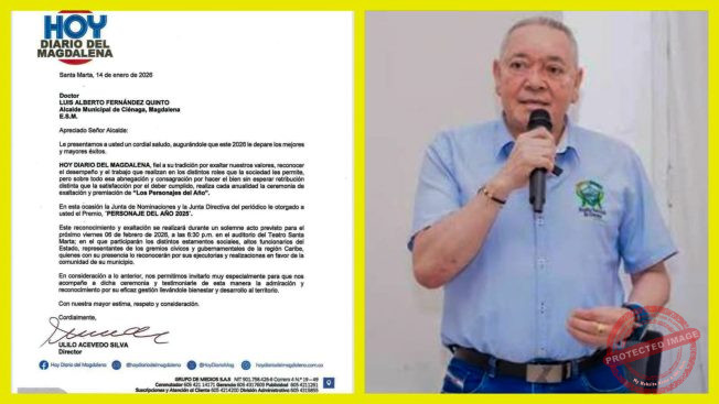 HOY DIARIO DEL MAGDALENA otorgará el premio «Personaje del Año 2025» al alcalde municipal de Ciénaga, Luis Alberto Fernández Quinto,…