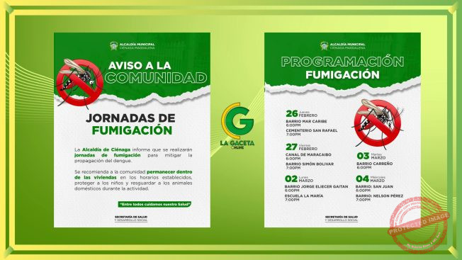 Alcaldía de Ciénaga inicia jornadas de fumigación contra el dengue La Alcaldía de Ciénaga anunció que a partir de este…