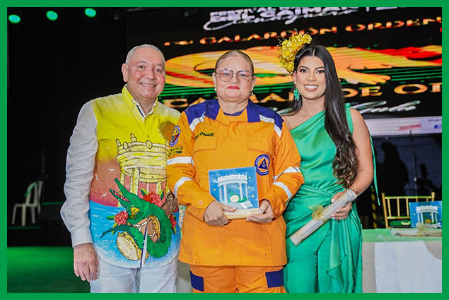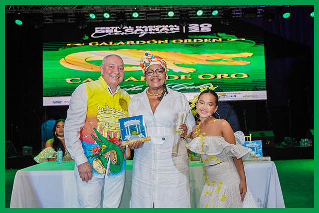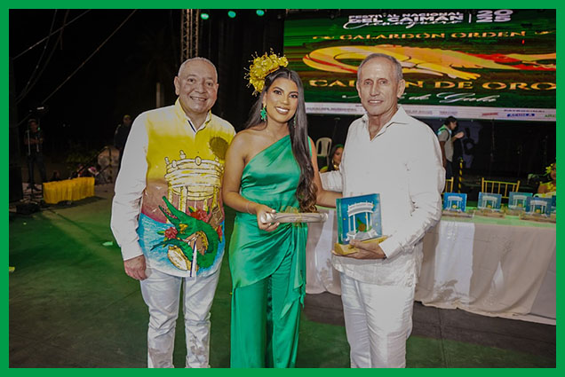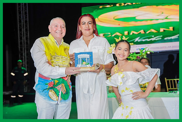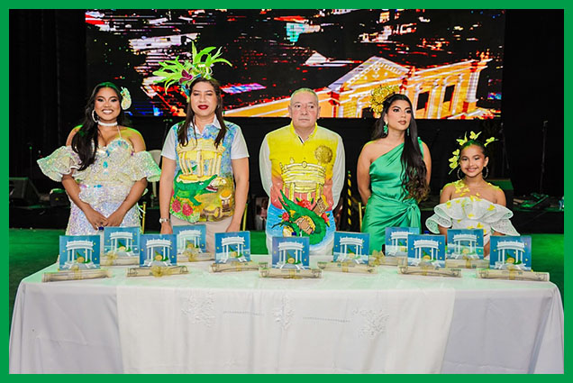 Inició la noche de gala con el primer evento, el cual fue la entrega del Galardón Orden Caimán de Oro a 11 personalidades ilustres del municipio, de manos del Alcalde Luis Fernández Quinto, la Gestora Social, María de los Ángeles Fernández, la Secretaria de Salud, Isabel Creus y las soberanas de las festividades del 2025.