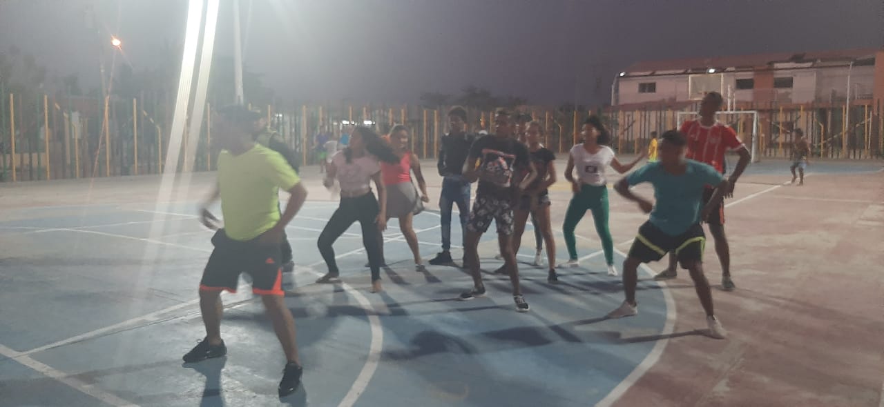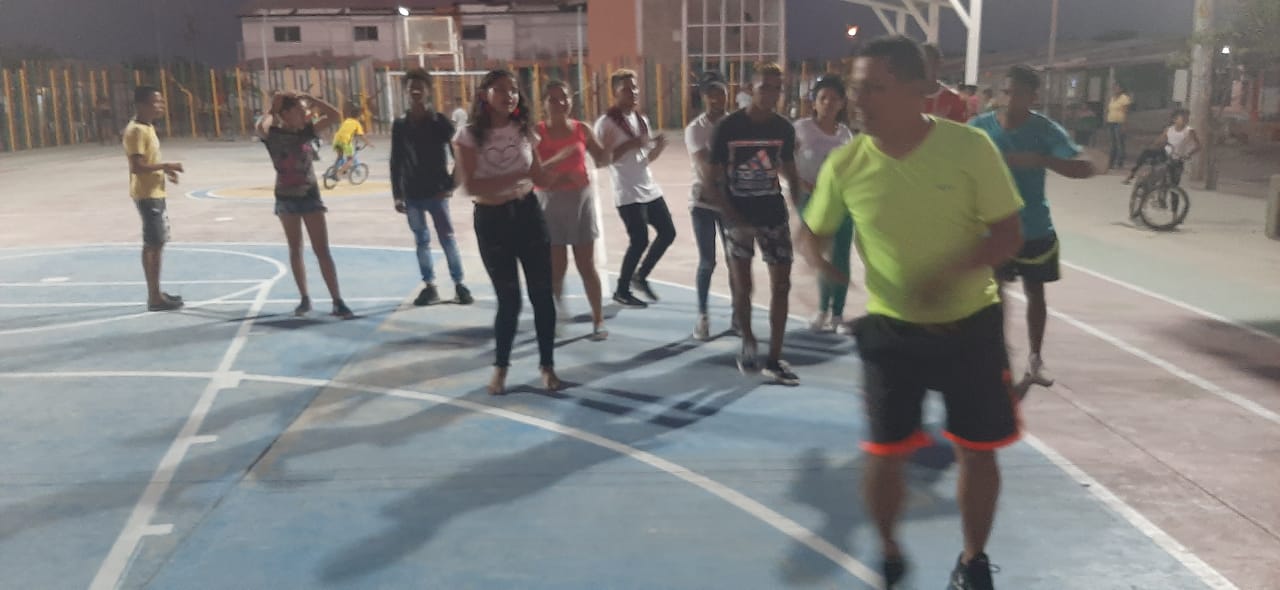 la actividad estuvo a cargo del PT MAURICIO CARDOZO, donde policías y comunidad en general, se integraron para realizar una serie de ejercicios combinados con diferentes ritmos musicales, cuyo fin primordial es buscar un mayor acercamiento con todos los ciudadanos, y generar espacios de interacción y esparcimiento.