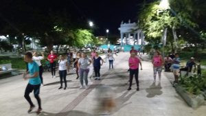 Los lunes, miércoles y viernes, a partir de las 7:00 de la noche, en el parque de la plaza del Centenario, un grupo de más de 30 personas, se reúnen para realizar la práctica de la Gimnasia Rítmica, Aeróbic y Gimnasia dirigida..