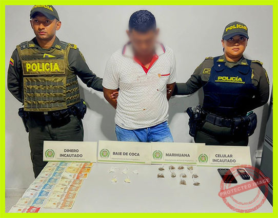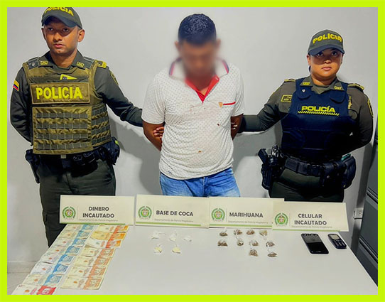 Asimismo, uniformados de la estación de Policía Tenerife, capturaron a un hombre de 29 años, este procedimiento se llevó a cabo durante labores de registro y solicitud de antecedentes en el barrio Simón Bolívar, donde se percataron que este sujeto llevaba cinco bolsas plásticas transparentes con base de coca, así como 10 bolsas plásticas con marihuana, dinero en efectivo y dos celulares.