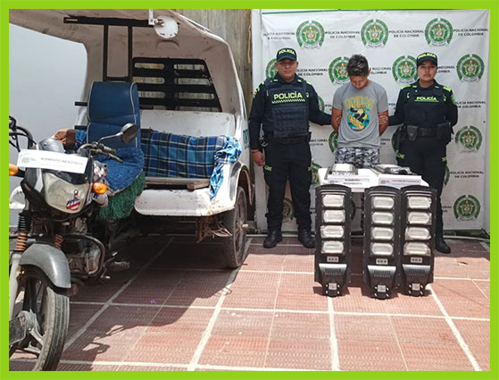 La patrulla policial acudiendo al llamado de la ciudadanía y encontraron a los dos sujetos saliendo del lugar y subiéndose a un motocarro que al registrarlos les hallaron lámparas solares y llaves mecánicas de hierro, logrando recuperar los elementos que habrían hurtado e inmovilizaron el motocarro.