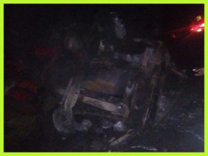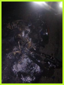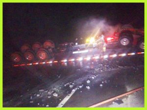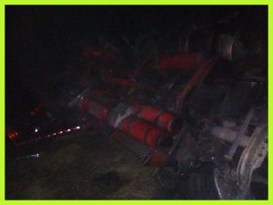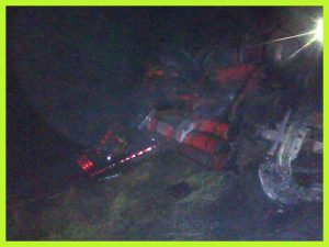 Al parecer, debido al choque entre ambos vehículos y la fuerza del impacto, se generó el volcamiento de la tractomula, en consecuencia, se inició una conflagración de cobertura vegetal y la incineración completa del cabezote de la misma. Gracias a la oportuna y rápida intervención de los Bomberos Voluntarios de Ciénaga se pudo apagar el fuego. El vehículo pesado, cubría la ruta Bogotá – Barranquilla, y transportaba 34 toneladas de carbón mineral, en cuanto a la motocicleta, esta completamente incinerada y no se tienen documentos sobre ella.