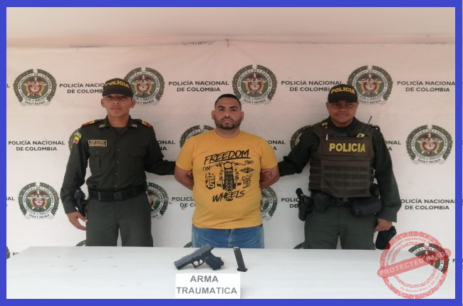 De igual manera, mediante planes de registro y control a la altura de la entrada del barrio Ondas del Caribe, en la Vía Alterna, fue capturado en flagrancia Kevin David Cortina Tobías a quien se le halló en su poder un arma de fuego tipo traumática, calibre 9 milímetros con 8 cartuchos para la misma; el hombre fue capturado por el delito de fabricación, tráfico, porte o tenencia de arma de fuego o municiones.