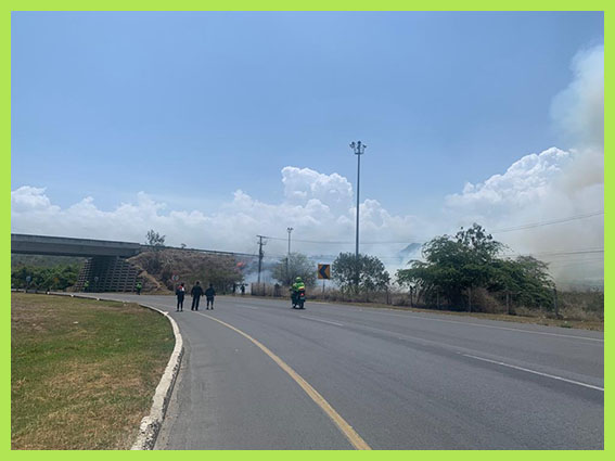 EN MEDIO DE LA PROTESTA, SE PRODUJO UN INCENDIO POR CABLEADO ELÉCTRICO A LO LARGO DE LA VÍA NACIONAL.