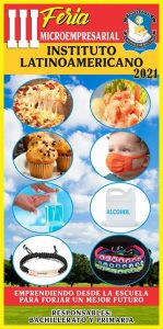 EL INSTITUTO LATINOAMERICANO, siempre a la vanguardia de la educación en el municipio, realizará el día de mañana 24 de septiembre, la Tercera Muestra Microempresarial con el lema: «EMPRENDIENDO DESDE LA ESCUELA, PARA FORJAR UN MEJOR FUTURO»