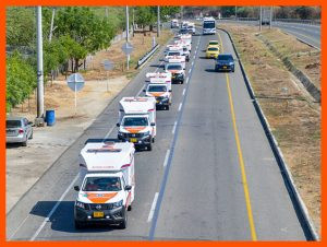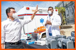 Con estas dos ambulancias que tuvieron una inversión de 610.000.000 millones de pesos, se duplicará la capacidad de traslados de pacientes desde los diferentes corregimientos de Ciénaga. El mandatario también le entregó al centro asistencial de los cienagueros, un completo equipo biomédico dirigido para pacientes afectados por el covid – 19 que requieran atención en todos los servicios de hospitalización, entre ellos, una bomba infusión, monitor de signos vitales, fonendoscopio, desfibrilador, aspirador, video laringoscopio, glucómetro, ecógrafo portátil, carro de paro y un digitalizador y cinco ventiladores no invasivos con una inversión cerca los 112.000.000 millones.