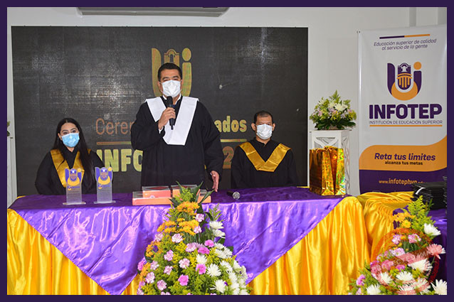 El rector Leonardo Pérez Suescún, manifestó que la IES INFOTEP no podía ser inferior al reto que le impone la pandemia a todas las entidades en los actuales momentos, en ese orden, cada uno de los estamentos institucionales aportó lo necesario para llevar a feliz término este evento de graduación que culmina con la entrega casa a casa del diploma de los Técnicos Profesionales.