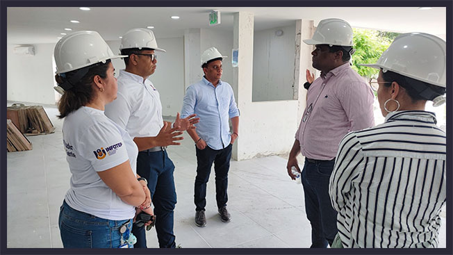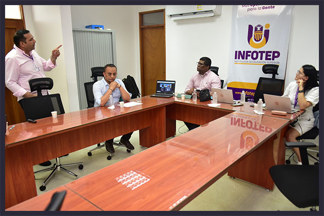 En ese sentido, la represente del Ministerio, Diana Milena Torres Ramírez; junto a los representantes de las líneas de acompañamiento provenientes de la Institución Pascual Bravo, José Luis Macías Rodríguez y Lady Rodríguez Roa; se reunieron con el rector de Infotep, Leonardo Pérez Suescún; el vicerrector académico, Arturo Charris Fontanilla; la vicerrectora administrativa, Martha Corredor Moncada; y otros líderes de procesos de la Institución para conocer condiciones de calidad como investigación, medios educativos, reglamento estudiantil y Proyecto Educativo Institucional (PEI), entre otros. Así mismo, los visitantes recorrieron la infraestructura física de las sedes donde funciona la institución.