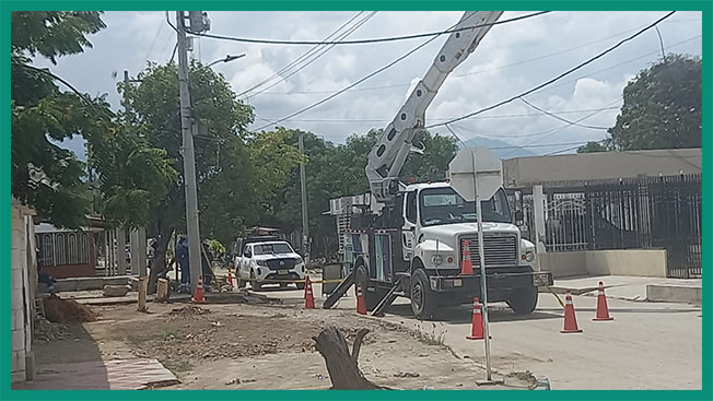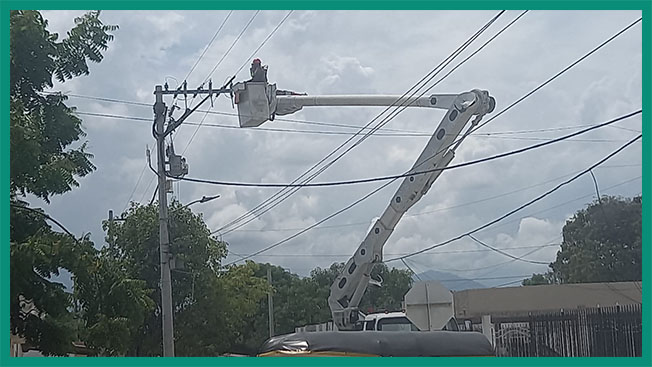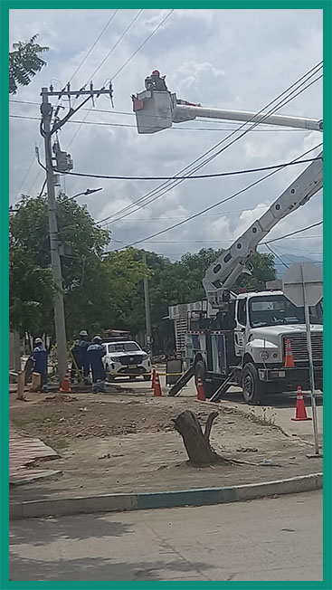 Para el arreglo se hizo necesario un carro canasta, el cual llegó en menos de hora y media e iniciaron los trabajos de forma moderada debido al alto riesgo que representan estas líneas de alta tensión. luego de aislarlas y proteger a los trabajadores, por mas de 4 horas y debido al difícil acceso del daño, trabajaron sin descanso hasta lograr solucionar la problemática y reestablecer el servicio de energía.