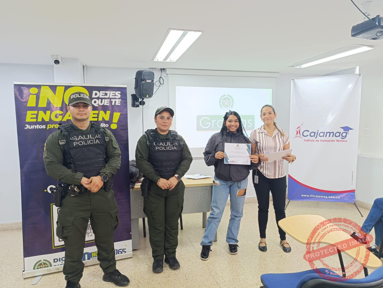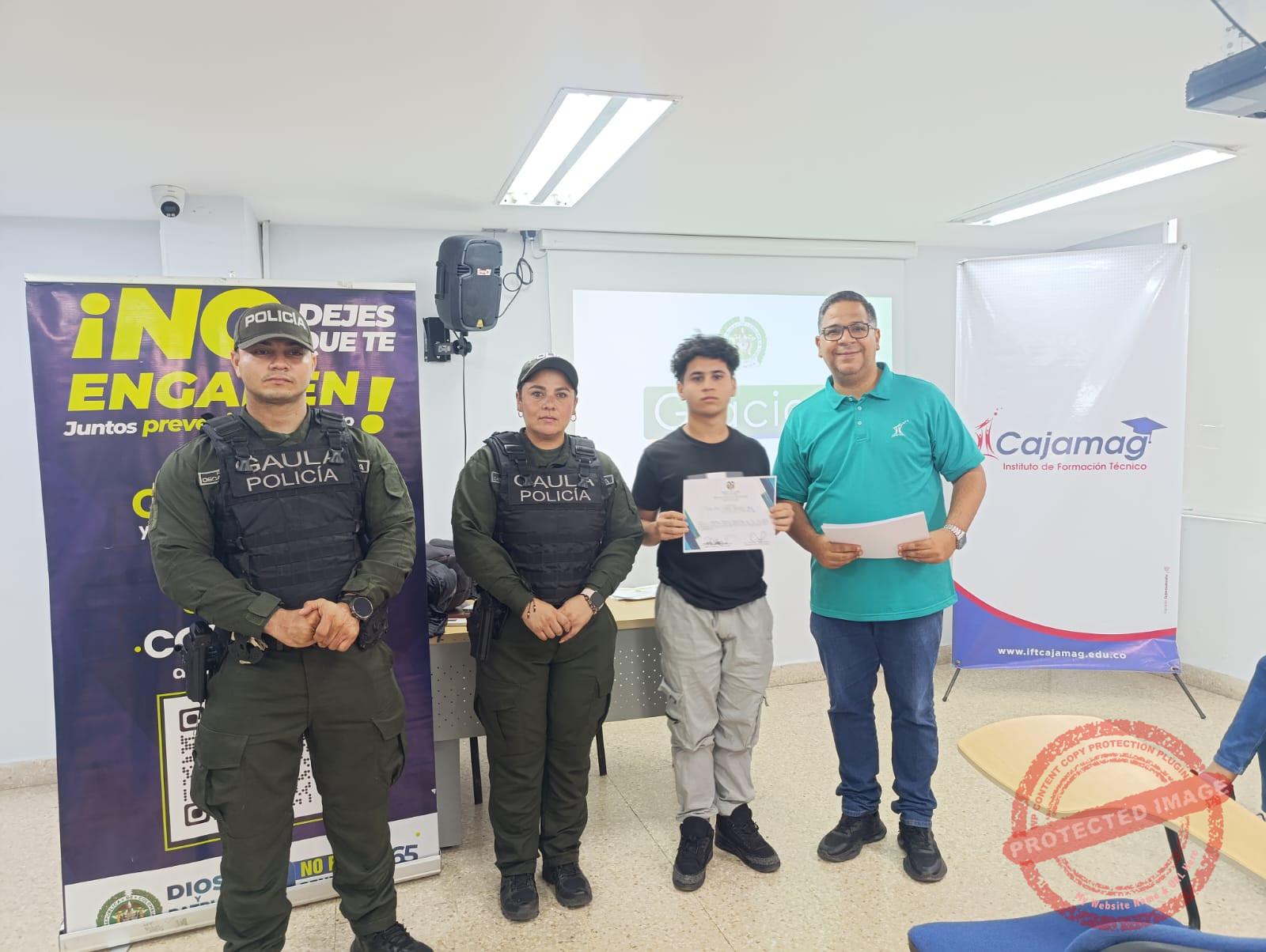 El GAULA Santa Marta, bajo el liderazgo de la Mayor Carolina Correa Cuartas, realizó un Encuentro Antiextorsión en el Centro Histórico de la ciudad, dirigido a docentes y estudiantes de la Caja de Compensación Familiar del Magdalena. La jornada tuvo como propósito sensibilizar a la comunidad educativa sobre las diferentes modalidades de extorsión, su modus operandi y las recomendaciones para prevenir este delito.