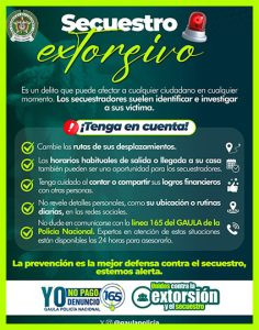 El GAULA Santa Marta brinda las siguientes recomendaciones para no ser victima de este delito #Alerta Previo al secuestro de su víctima, generalmente realizan seguimientos a sus rutinas diarias:
