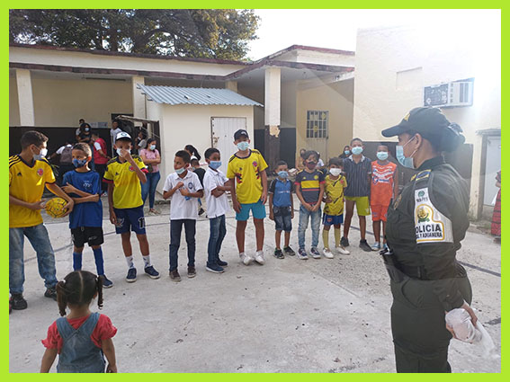 Teniendo en cuenta la finalización de actividades en marco de este programa, uniformados de la Policía Fiscal y Aduanera de Santa Marta desarrollaron actividad lúdica-recreativa con los padres de familia, niños y niñas que pertenecen al mismo.