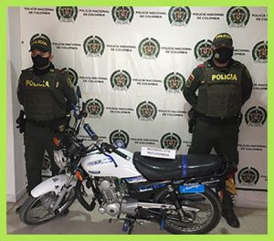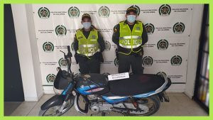 De igual manera, sobre la trocha que conduce hacia la Urbanización Shaday, los policías del cuadrante, en medio de labores de patrullaje, registro y control, hallaron abandonada a un lado de la vía, una motocicleta Suzuki color blanco, de placa SBP-80E, que al verificar sus antecedentes en la base de datos de la Policía, presentaba una denuncia por hurto en esa misma población, en el año 2019.