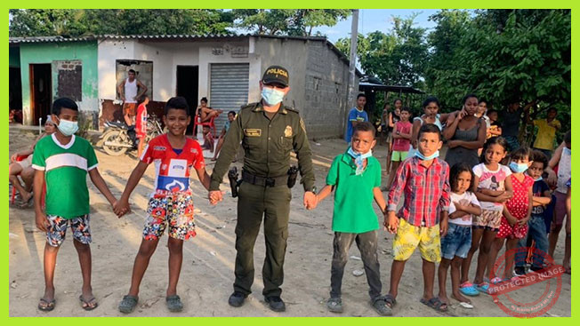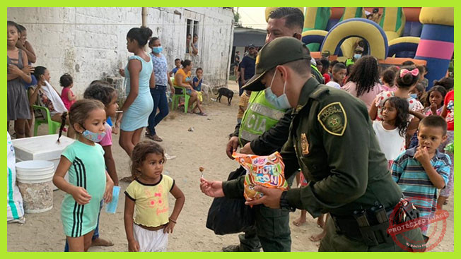 El evento fue realizado en la avenida principal del mencionado barrio y estuvo liderado por el patrullero Eraldis Salas, Gestor de participación Ciudadana en la Zona Bananera, contando con el acompañamiento de uniformados del Modelo Nacional de Vigilancia Comunitaria por Cuadrantes y la comunidad del barrio Las Palmas, quienes organizaron este bonita actividad, teniendo en cuenta que los niños que residen en este sector son de escasos recursos y desde el inicio de la pandemia, no habían podido integrarse sanamente.