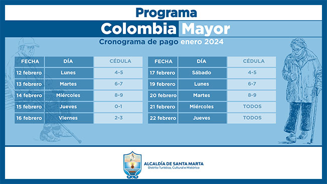 Para este primer ciclo del año, la Secretaría de Promoción Social comparte el calendario correspondiente al mes de febrero para la entrega de incentivos a los beneficiarios del programa Colombia Mayor, gestionado por el Departamento para la Prosperidad Social del Gobierno nacional. Los beneficiarios recibirán notificaciones del pago a través de mensajes de texto, y el nuevo giro de incentivo, será por un monto de ochenta mil pesos ($80.000) por beneficiario, el cual se realizará mediante los puntos de Supergiros autorizados.