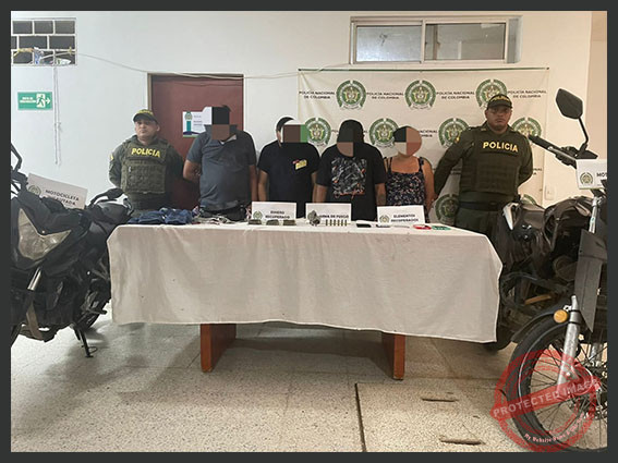 Los capturados fueron identificados como: Annie Joelys Gómez Villa de Barranquilla 35 años, Javier Stiven Serrano Truyol de Soledad-Atlántico 32 años, Ramiro Javier Torregrosa Soto de Soledad 32 años y Julio Cesar Álvarez Sanjuán de Barranquilla 28 años. Junto a los elementos incautados fueron dejados a disposición de la Fiscalía General de la Nación.