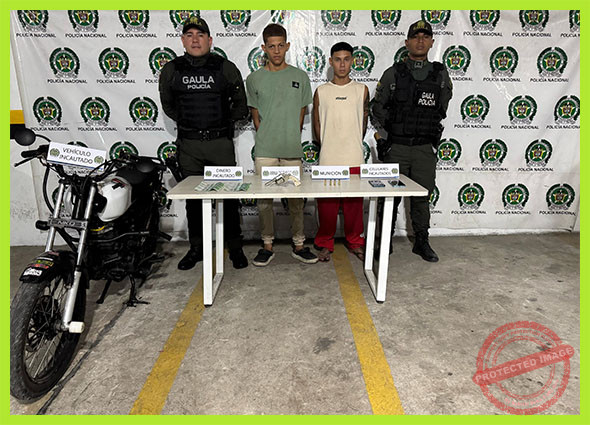 Estos sujetos cuentan con 11 anotaciones por homicidio, extorsión, violencia intrafamiliar, hurto calificado y porte ilegal de armas. Se incautó una motocicleta y $5.000.000 en efectivo.