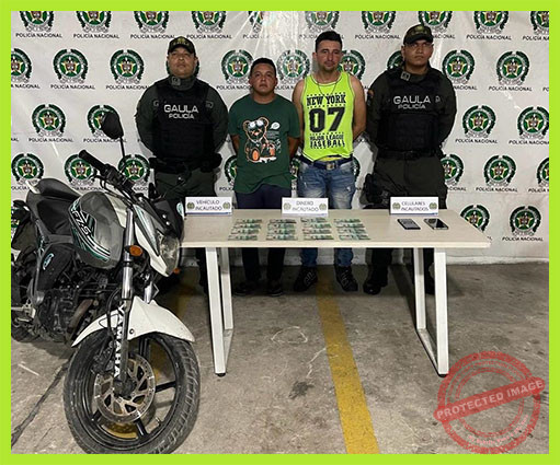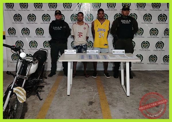 Finalmente, se logró la captura de dos presuntos delincuentes en flagrancia por el delito extorsión en el municipio de Soledad a la altura del barrio Villa Valentina. En el operativo, le fueron encontrados tres panfletos extorsivos, un millón de pesos en efectivo y una motocicleta. Los detenidos realizaban las extorsiones a nombre del grupo delincuencial común organizado los costeños, además, realizaban disparos a las fachadas de los establecimientos con el fin de presionar a los comerciantes para el pago de las extorsiones. Inmediatamente fueron puesto a disposición de las autoridades competentes por el delito antes mencionado.