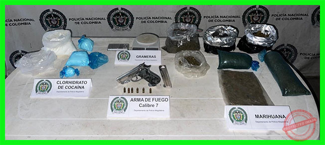 La diligencia de allanamiento y registro, realizada en coordinación con la Fiscalía Seccional 23 de El Banco, tuvo lugar en una vivienda del barrio Pueblo Nuevo, donde las autoridades encontraron una pistola, un proveedor y seis cartuchos calibre 7.65, además de 1.950 gramos de marihuana y cocaína, junto con dos grameras.