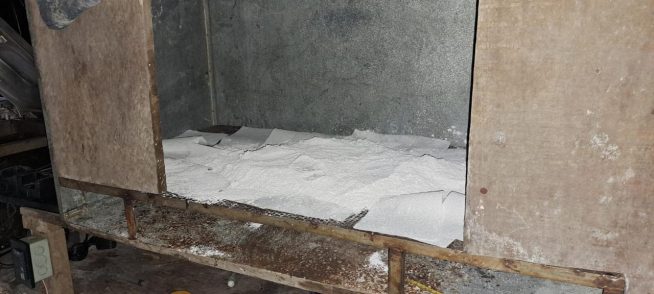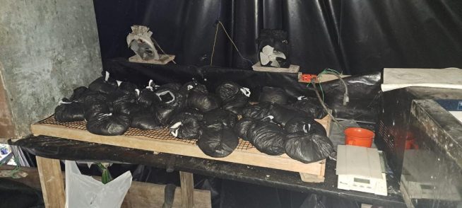 - 485 kilogramos de sustancias sólidas y equipos especializados para la producción.