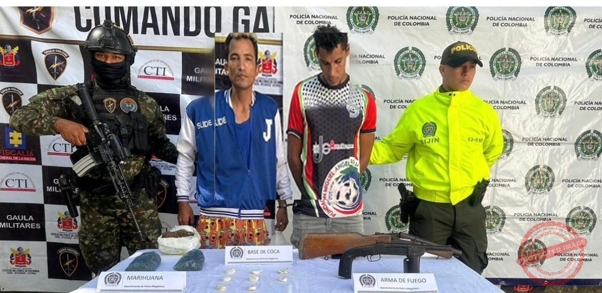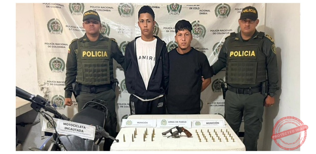 En el corregimiento de San José de Kennedy, Zona Bananera, fueron capturados en flagrancia dos presuntos integrantes de las Autodefensas Conquistadoras de la Sierra. En este operativo se decomisó un revólver calibre 32, 40 cartuchos para revólver y pistola, además de la inmovilización de una motocicleta.