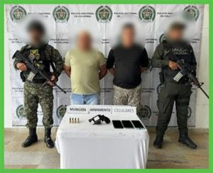 En el corregimiento de Guachaca, zona rural de Santa Marta, fueron capturados alias “Pata de Palo” y alias “Comando 60”, a quienes se les incautó un arma de fuego. Según las investigaciones, los detenidos serían miembros activos de la estructura delincuencial Autodefensas Conquistadores de la Sierra Nevada, donde se desempeñan como dinamizadores de cobros de extorsiones y habían llegado al sector para reunirse con comerciantes y fijar las cuotas extorsivas y las fechas de pago. Alias “Comando 60” presenta anotaciones judiciales por varios delitos y, de acuerdo con indagaciones, anteriormente habría ejercido sus actividades criminales en la Zona Bananera del Magdalena.
