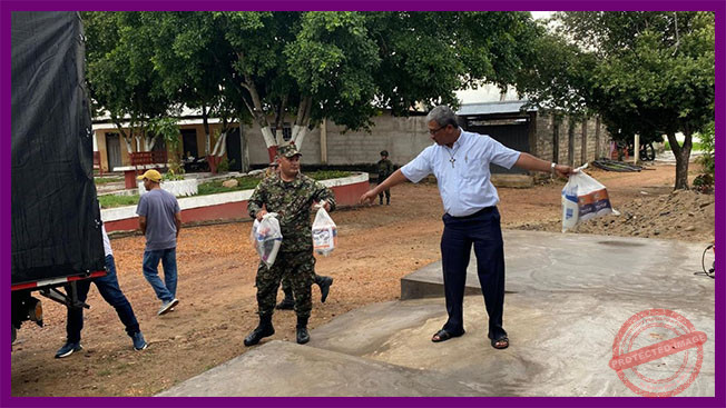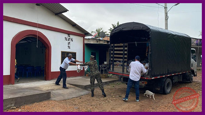 Allí, representantes de la Corporación Minuto de Dios y soldados del Batallón de Apoyo de Acción Integral y Desarrollo N.º1 realizaron la entrega de las ayudas humanitarias a la comunidad.