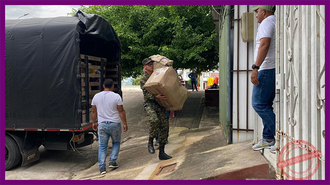 La entrega de estas ayudas representó un gran reto logístico al ser transportadas durante dos días en vehículos del Batallón de Selva N.º48 de la Brigada 19 del Ejército Nacional con el apoyo de la Alcaldía de Simití, hasta el municipio de Puerto Wilches, Santander, desde donde posteriormente fueron movilizadas por vía fluvial a través del río Magdalena en un planchón que las llevó hasta su destino final: Simití, Bolívar.