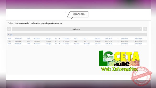TABLA DE CONTAGIO CIÉNAGA, MAGDALENA