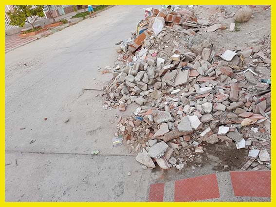 De acuerdo con la denuncia, los desechos son arrojados por los trabajadores de la mejora, al frente de la misma, invadiendo parte de la vía. Esto tiene preocupados a los habitantes del sector ya que esta situación acarrear accidentes, sobre todo cuando se presenten cortes de luz intempestivo en horas de la noche.