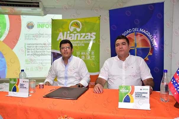 El acuerdo firmado entre el Doctor Pablo Vera Salazar, Rector de UNIMAGDALENA y el Rector de la IES INFOTEP Leonardo Pérez Suescún, tiene como objeto establecer una alianza para el fortalecimiento de la Educación Superior en el departamento el Magdalena. El propósito es brindar a los jóvenes una formación de alta calidad con criterios de excelencia académica, ética y responsabilidad, a través de la articulación de programas, formalización de actividades de carácter académico, de investigación y extensión, bajo principios de calidad, equidad, inclusión y mutua conveniencia.