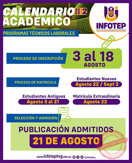 El documento hace público el calendario académico de estos programas de Formación para el Trabajo y el Desarrollo Humano de cara al segundo periodo del presente año. En el texto se deja claro que las personas interesadas tendrán hasta el 18 de agosto para realizar las inscripciones. Posteriormente, podrán legalizar su matrícula de estudiantes nuevos.