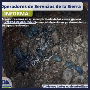 De otra parte, Operadores de Servicios de la Sierra, pide a la ciudadanía no arrojar residuos en el alcantarillado de las casas, pues este comportamiento genera fallas en el servicios como: