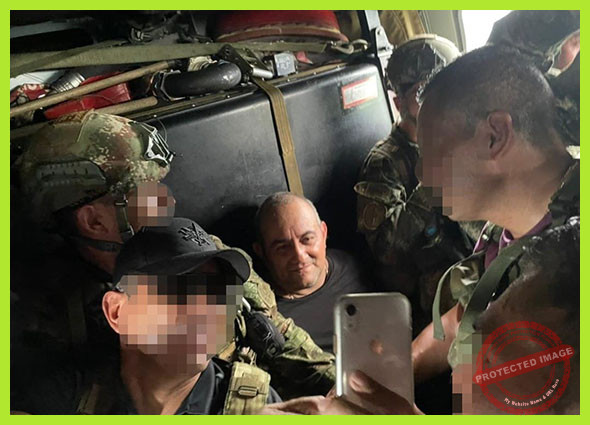 «…Llegó a su fin la trayectoria de este narcotraficante que durante años sembró dolor al frente del Grupo Armado Organizado (GAO). La Policía Nacional y las Fuerzas Militares lo capturaron en el marco de la operación ‘Osiris’, que hace parte de la Campaña Militar y Policial ‘Agamenón’. A ‘Otoniel’ le figuran 128 órdenes de captura, siete sentencias condenatorias y ocho medidas de aseguramiento. Así mismo, existen en su contra dos circulares rojas y una azul de INTERPOL y solicitud de extradición emitida por una corte de los Estados Unidos»: COMUNICADO DE PRENSA POLICIA NACIONAL