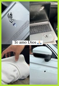 «Me pegaron un tiro y quedó en el computador. Entró por la puerta y rozó por mi pierna», dijo en el video Valdiri, mostrando que la pantalla de su computador portátil quedó destruida.