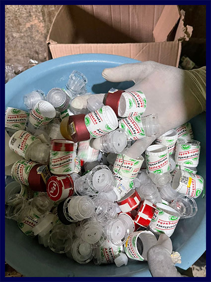 Asimismo, se hallaron 180 estampillas falsificadas de diferentes marcas, 120 tapas y 105 dosificadores, elementos comúnmente utilizados para simular la autenticidad del producto y facilitar su comercialización ilegal.