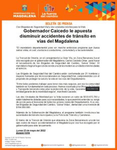 Además de la Gobernación del Magdalena, el programa también involucra a las autoridades de tránsito municipales y a la Policía de Tránsito y Carreteras.