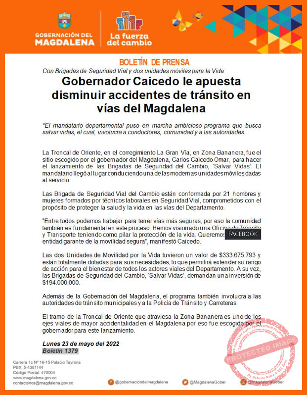 Además de la Gobernación del Magdalena, el programa también involucra a las autoridades de tránsito municipales y a la Policía de Tránsito y Carreteras.