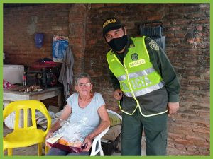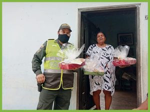 Con un puerta a puerta, el Teniente Manuel Fernando Arguello, comandante de la Estación de Policía Santa Ana, el Gestor de participación ciudadana Jhonatan Calle, quienes acompañados por la Gestora Social María Alejandra López Díaz, llegaron a las viviendas del mencionado corregimiento y preservando en todo momento las medidas de bioseguridad para prevenir el Covid-19, hicieron entrega de anchetas comunitarias a los abuelitos, quienes sorprendidos con la presencia institucional, manifestaron que este día sería inolvidable para ellos, teniendo en cuenta que por ser población vulnerable en esta temporada de pandemia, nunca pensaron que iban a recibir un regalo de tal magnitud.