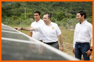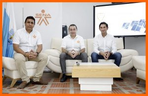 El director general del SENA, Carlos Mario Estrada Molina, en compañía del viceministro de Minas y Energía, Miguel Lotero Robledo y el director regional del SENA Magdalena, Víctor Hugo Armenta Herrera, hicieron entrega de 480 paneles solares fotovoltaicos en el Centro Acuícola y Agroindustrial de Gaira.