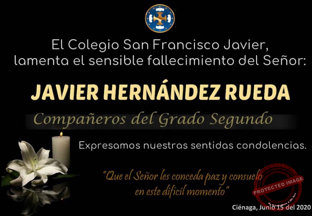 «Sentimos profundamente la muerte de tu padre JAVIER HERNÁNDEZ RUEDA,  Fue una gran persona y sus enseñanzas estarán siempre entre nosotros. Me uno en tu dolor y tristeza, Hemos compartido muchos momentos de la vida y en estos días difíciles estaremos al lado tuyo para acompañarte en este sentimiento de profundo dolor hasta que finalmente aparezca nuevamente la luz de la esperanza. Estamos seguros que tiene un lugar preferencial en el cielo al lado de Dios y en cada uno de tus recuerdos. Lo sentimos mucho. Te enviamos  un fuerte abrazo.»